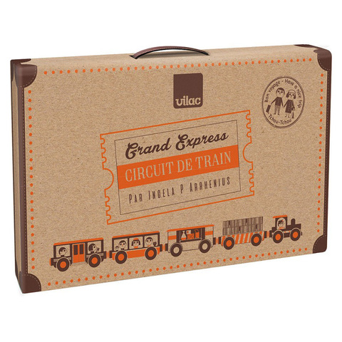Деревянная железная дорога от Vilac с иллюстрациями шведской художницы Ингелы П. Аррениус создана специально для малышей. В набор входят рельсы, паровозик с вагончиками, светофор, знаки, деревья и милые фигурки, которые помогают разыгрывать первые сюжеты и придумывать истории. Крупные детали удобно держать маленьким ручкам, элементы легко соединяются между собой, развивая мелкую моторику, координацию и воображение. Игра с железной дорогой тренирует логическое мышление, учит ребенка планировать маршрут и знакомит с базовыми правилами движения. Все детали выполнены из прочного дерева с безопасными красками, поэтому игрушка подходит для длительной и безопасной игры дома.