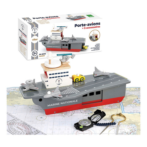 Деревянный игровой набор «Авианосец» Vilac — это большой корабль для увлекательных морских приключений. Ребенок сможет придумывать собственные истории, управлять авианосцем, размещать самолеты на палубе, «взлетать» и «садиться», развивая воображение и придумывая свои сюжетно-ролевые игры. Прочный корпус из дерева, яркая детальная прорисовка и удобный размер делают набор удобным для детских рук. Игра с авианосцем помогает тренировать мелкую моторику, координацию движений и пространственное мышление, а также знакомит с миром техники и морского флота. Подходит для самостоятельной игры и совместных игр с родителями или друзьями.