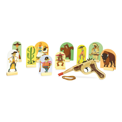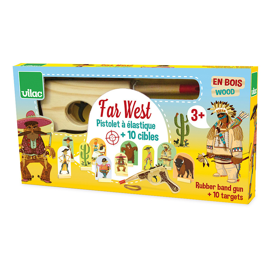 Набор «Пистолет и игра Дикий Запад» от Vilac — это увлекательная игра для детей, которая переносит их в атмосферу настоящего вестерна. Ребёнок может почувствовать себя шерифом или ковбоем, тренируя меткость и координацию движений, стреляя по мишеням безопасными снарядами. Яркий дизайн, прочные материалы и продуманная форма пистолета удобны для детской руки. Игра помогает развивать внимание, глазомер, мелкую моторику и воображение, а также отлично подходит для активных сюжетно-ролевых игр дома и на даче.