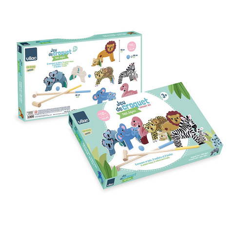 Яркий деревянный крокет с забавными животными от Vilac — отличная игра как для дома, так и для активных прогулок на свежем воздухе. В набор входят ворота в виде зверюшек (пары родители-малыши), клюшки и шарики, выполненные из прочного дерева с гладкой безопасной поверхностью. Ребёнок учится меткости, координации движений и усидчивости, а также играет в команде с друзьями или родителями. Игра подходит для дачи, двора или парка, легко берётся с собой и надолго увлекает детей. Яркий дизайн и милые персонажи делают игру особенно привлекательной для малышей и стимулируют интерес к подвижным играм вместо гаджетов.