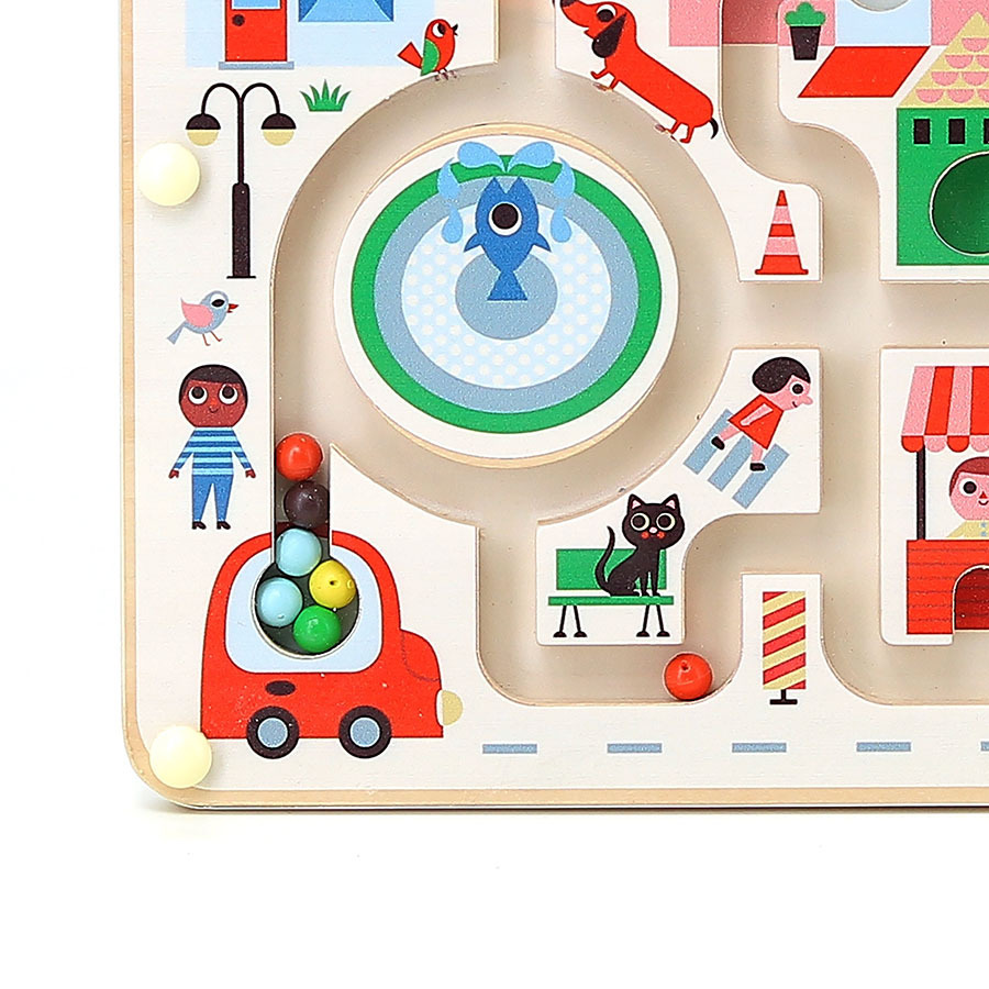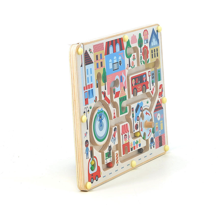 Деревянная развивающая игра от Vilac "Магнитный лабиринт" с дизайном Ingela P.Arrhenius — это увлекательная игра для самых маленьких. В комплекте идет деревянное поле с лабиринтами, по которым магнитным стилусом надо проводить шарики в свои домики. Не беспокойтесь, шарики не выпадут, они находятся за защитным экраном, тем сложнее становится задача! Игрушка помогает развивать мелкую моторику, координацию движений, логическое мышление и зрительное восприятие, стимулирует любопытство и самостоятельную игру ребенка. Выполнена из прочного дерева с гладкими, безопасными для детских рук поверхностями и нетоксичными красками. Удобный формат позволяет легко брать игрушку с собой и использовать как дома, так и в дороге.