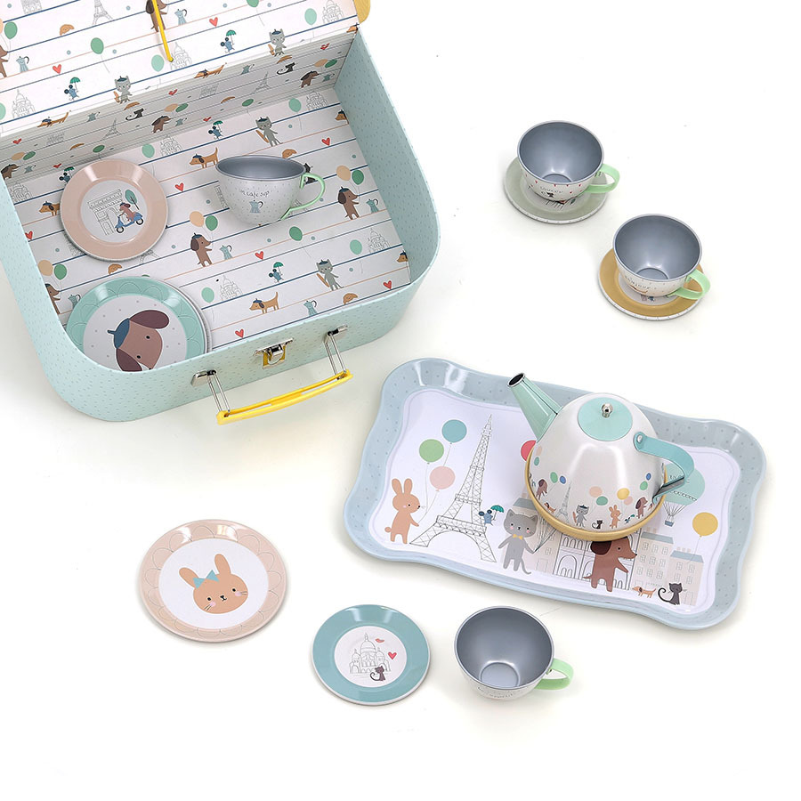 Очаровательный музыкальный чайный сервиз Vilac «Париж» — это набор посуды для игры в чаепитие, который превращает каждое чаепитие в маленький праздник. В комплект входят чайник, чашечки с блюдцами, тарелочки и поднос с нежными иллюстрациями в парижском стиле. Когда вы наклоняете чайник, он играет приятную, нежную мелодию.