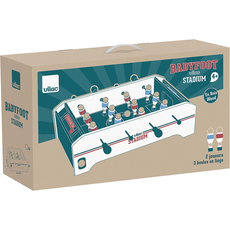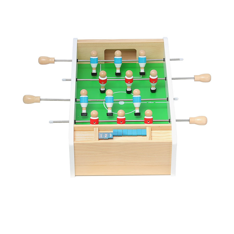 Настольная игра «Футбол» от Vilac — это яркий деревянный настольный футбол, который подарит детям и взрослым много весёлых совместных минут. Игроки управляют командами с помощью удобных рычагов, стараясь забить как можно больше голов сопернику. Прочный деревянный корпус, устойчивое поле и аккуратно выполненные фигурки делают игру долговечной и безопасной для детей. Игра развивает координацию движений, реакцию, внимание и умение соревноваться по правилам. Подходит для семейных игр, детских праздников и дружеских турниров дома.