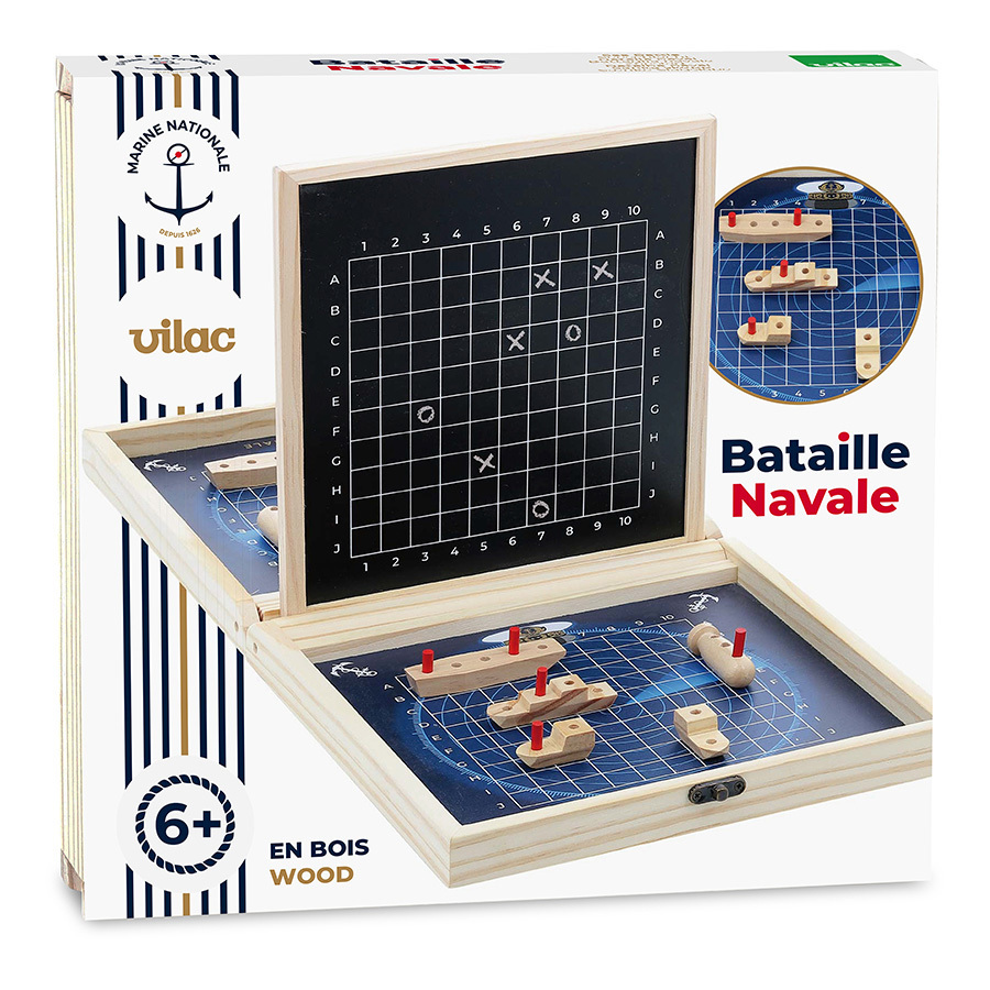 Настольная игра «Морской бой» от Vilac — это классическая стратегия в красивом деревянном исполнении, которая увлечёт и детей, и взрослых. Игроки по очереди «стреляют» по координатам, стараясь первыми потопить все корабли соперника, развивая логическое мышление, внимание и умение просчитывать ходы наперёд. Удобное поле с обозначениями помогает ребёнку тренировать счёт и ориентацию в пространстве, а прочные деревянные элементы приятно держать в руках и они прослужат долго. Игра компактно складывается в коробку, её удобно брать с собой в поездки, на дачу или в гости, чтобы провести время всей семьёй с пользой и интересом.