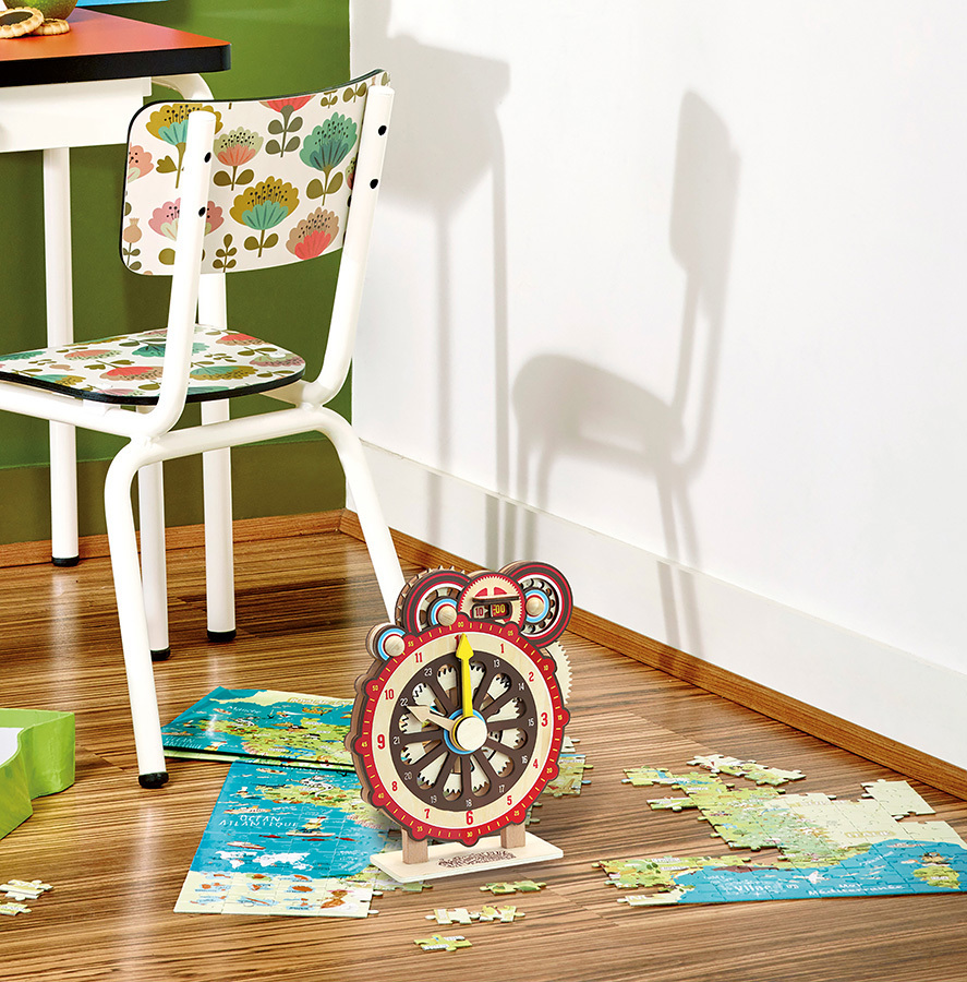 Деревянные обучающие часы Vilac с карточками помогут ребенку в игровой форме освоить время, цифры и понятия «час», «минуты», «утро–вечер». На большом ярком циферблате удобно крутить стрелки, а набор двусторонних карточек с заданиями подсказывает, какое время нужно выставить. Игра развивает логическое мышление, внимание, память и мелкую моторику, знакомит с режимом дня и учит сопоставлять события с определенным временем. Изготовлено из прочного дерева с безопасными красками, подходит для занятий дома и в детском саду, особенно по системе Монтессори.