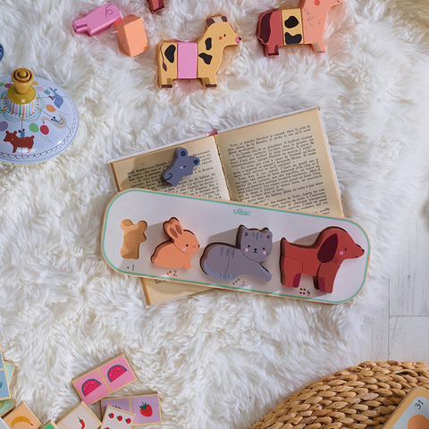 Чудесная развивающая игра для самых маленьких от Vilac, которая знакомит ребёнка с миром животных и помогает тренировать мелкую моторику, внимание и логическое мышление. В набор входят крупные деревянные элементы в виде животных, удобные для детских ручек, и деревянная панель, куда нужно собрать животных по частям. Ребёнок учится сопоставлять формы и картинки, называть животных, различать цвета. Игрушка выполнена из прочного дерева с гладкими краями и безопасными красками, подходит для совместных игр родителей с ребёнком и первых занятий по развитию речи и мышления.