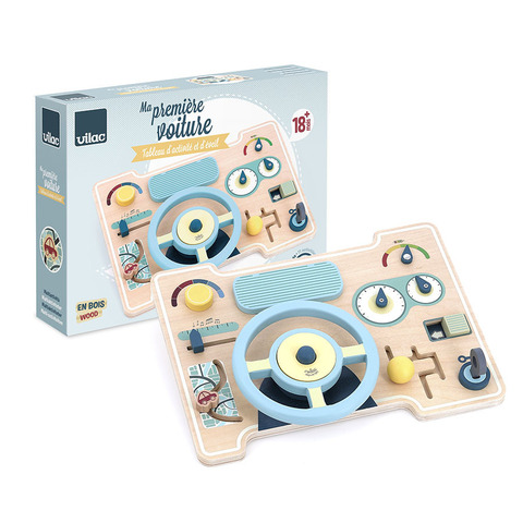 Деревянный развивающий центр Vilac «Юный водитель» — это яркая панель с рулём и элементами настоящей приборной панели автомобиля, созданная специально для маленьких автолюбителей. Ребёнок может «вести машину», крутить руль, переключать рычаги, нажимать кнопки, вертеть шестерёнки и наблюдать за стрелками, развивая координацию движений, мелкую моторику и воображение. Игровые элементы помогают познакомиться с причинно-следственными связями, тренируют внимание и усидчивость.