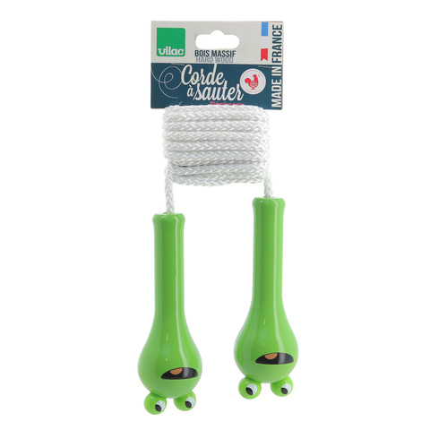 Яркая скакалка Vilac с забавными деревянными ручками в виде лягушек поможет ребенку весело и с пользой провести время. Прыжки через скакалку развивают координацию, выносливость, чувство ритма и крупную моторику, укрепляют мышцы ног и улучшают общую физическую форму. Удобные по размеру ручки хорошо лежат в детской руке, гладко отполированы и безопасны для кожи. Длина веревки подходит для детей, ее можно при необходимости немного укоротить.