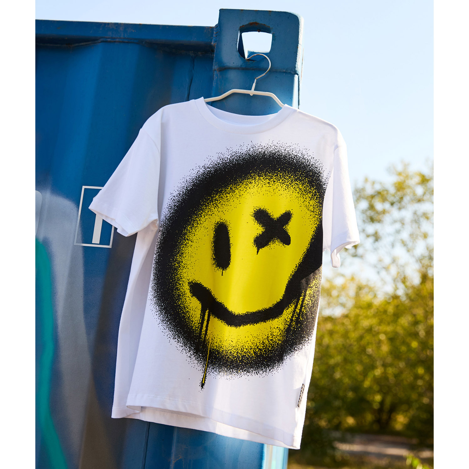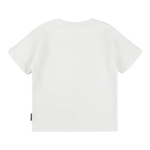 Хлопковая футболка MOLO белого цвета с ярким принтом-смайлом спереди. Свободный фасон.