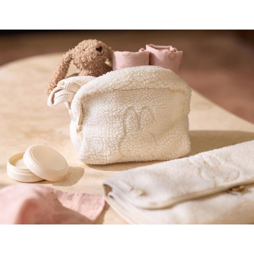 Очаровательная косметичка Jollein Teddy Miffy молочного цвета станет незаменимым помощником для мамы дома и в дороге. Мягкий плюшевый материал с милым зайчиком Миффи приятен на ощупь и безопасен для детей, а нейтральный оттенок легко сочетается с другими аксессуарами. Внутри достаточно места для детской косметики, подгузников, салфеток и мелочей, которые важно держать под рукой. Удобная застёжка-молния надёжно фиксирует содержимое, а компактный размер позволяет брать косметичку в коляску, сумку или чемодан. Идеально подходит для организации ухода за малышом и станет стильным и практичным подарком для молодых родителей.