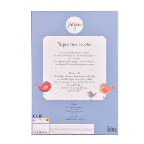 Jolijou - французский бренд мягких, тряпичных кукол, входящий в группу компаний Doudou et Compagnie, создающих игрушки для детей более 45 лет. Нежные, тактильно приятные куклы созданы с вниманием к мельчайшим деталям и предназначены для детей от 0 лет, потому что полностью безопасны за счет материалов и вышитых деталей.
