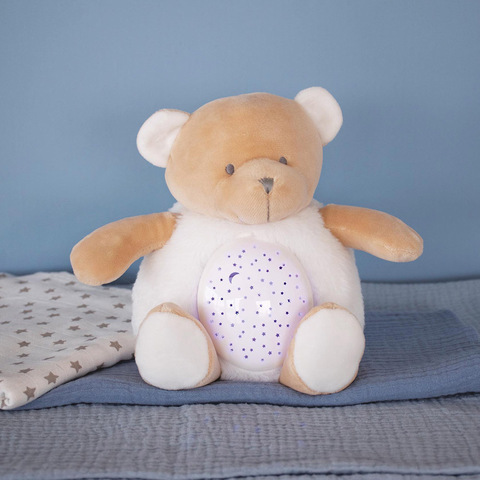 Мягкий музыкальный ночник-игрушка в виде очаровательного мишки от Doudou et Compagnie станет нежным другом малыша и поможет ему спокойно засыпать. Мишка сочетает в себе и ночник, и музыкальную игрушку: теплый мягкий свет создает уютную атмосферу в детской, не раздражает глаза и не мешает сну, а приятная, успокаивающая мелодия создает атмосферу безопасности. Игрушка выполнена из приятных на ощупь, безопасных для детей материалов, подходит для объятий и игр. Идеальна для использования в кроватке, коляске или во время путешествий, помогает ребенку чувствовать себя спокойно и защищенно ночью.